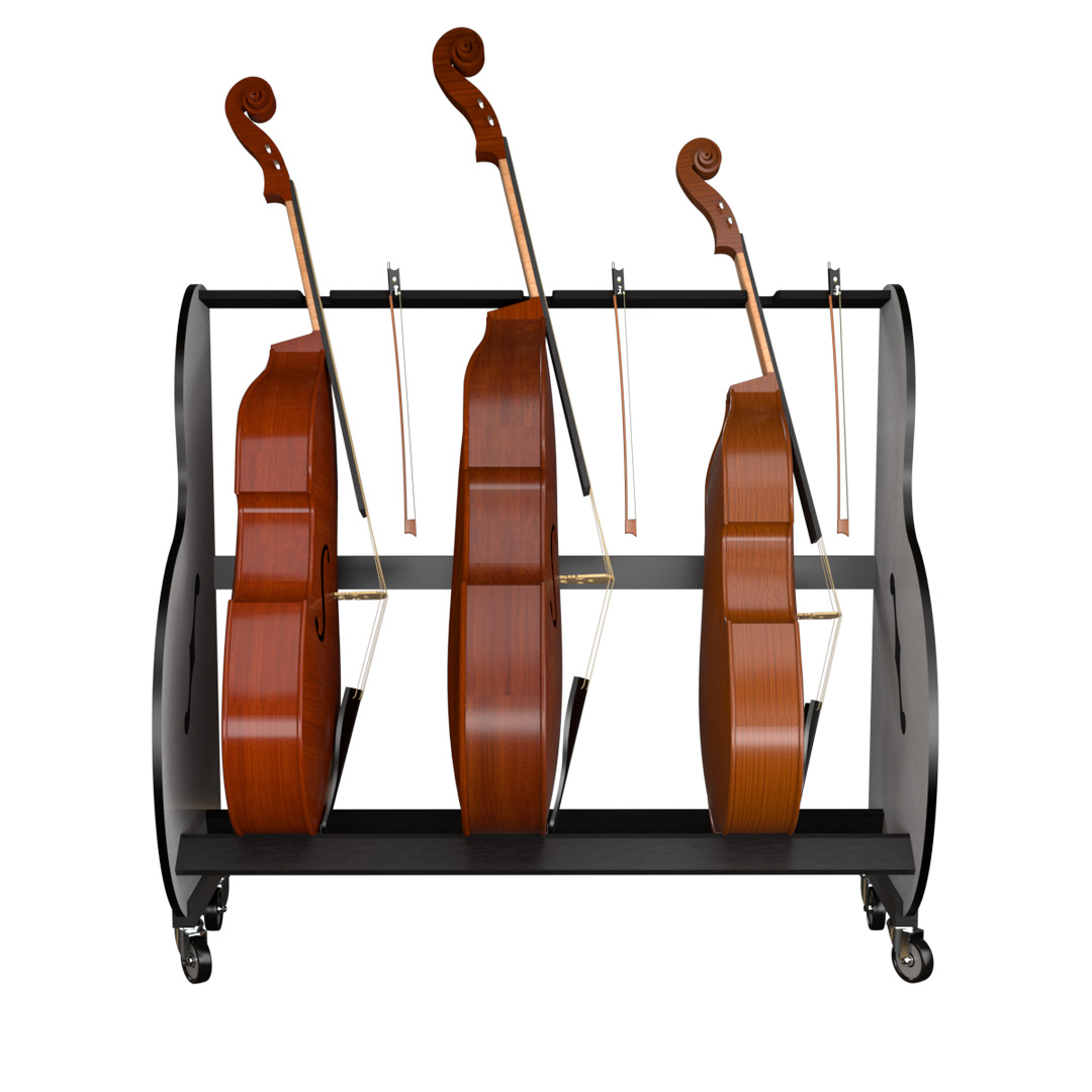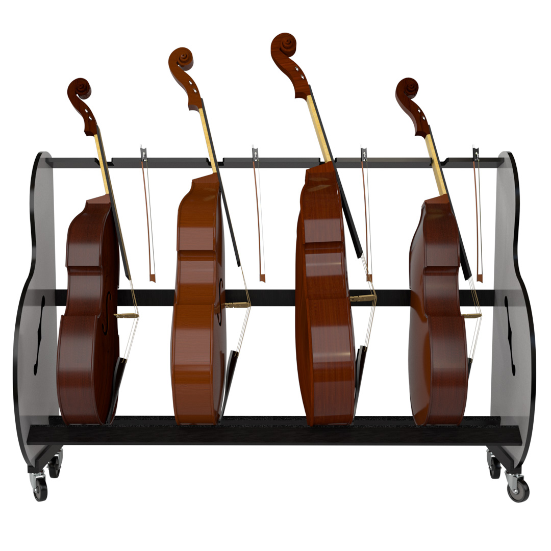 Q: What sizes of double basses can the rack accommodate? A: It’s built to accommodate various sizes of double basses, including ¼, ½, and ¾ sizes. Its spacious design ensures that each instrument, regardless of size, fits comfortably and securely. Q: Can the stand be customized to fit specific classroom dimensions? A: This product is offered in two sizes, one that holds 3 instruments and one that holds 4, both designed to efficiently accommodate a range of classroom dimensions. We currently do not offer customization options. Q: How sturdy is the rack, and how well will it protect my students’ instruments? A: The rack is constructed with durability and instrument safety in mind. It's made from robust materials to ensure stability and longevity. Additionally, the rack is designed to hold each bass securely, minimizing the risk of tipping or damage. Q: Is the rack easy to move for classroom reconfiguration? A: Yes, the rack includes heavy-duty wheels, with brakes, that make it easy to move around your classroom or performance space, despite the heavy weight of multiple double-basses. Q: How easy is the rack to assemble? A: We provide clear illustrated instructions and all necessary hardware, making it easy for music educators or facility staff to put it together without needing specialized tools. [short_description] =>