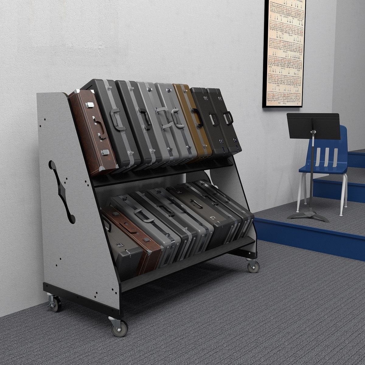 Constructed to endure the daily use of a bustling music classroom, the Band Room trumpet cart offers a robust and reliable storage option meant to last for years.✓ Mobile for Flexible Teaching