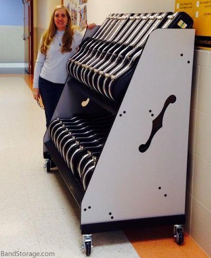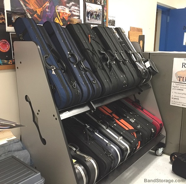 "easy to move" “I liked the violin/viola rack that I bought last year so much that I purchased a second one this year. My maintenance people like the racks too because they are on wheels and easy to move when cleaning the room or waxing the floors over the summer. Thank you very much.” – Don G. (Orchestra Director at Pitman High School – Turlock, CA)
